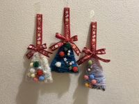 毛糸を巻き付けたツリー型の土台をデコレーションします。
