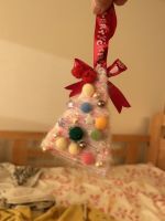 毛糸を巻き付けたツリー型の土台をデコレーションします。