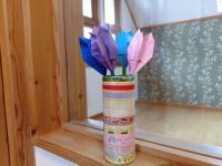 缶をマスキングテープでデコレーションして花瓶代わりに。